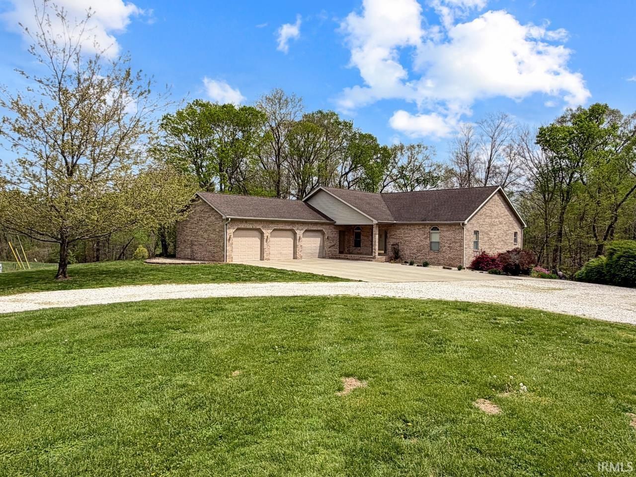 Escape to your own private retreat with this incredible 22.92-acre rural property featuring a large pond, wooded acreage, and open ground?perfect for hunting, fishing, hiking, and enjoying the outdoors! Built in 2001, this one-story full brick home with a finished walkout basement offers exceptional space and versatility. Take in breathtaking views of the land, pond, and woods from the expansive 60'x12' rear deck, or relax on the covered patio below. The property also features a circular front driveway, a concrete drive wrapping to the back, an attached 24'x36' 3-car garage, and a 32'x40' detached garage?ideal for storage, hobbies, or equipment. Inside, the home boasts an open floor plan with cathedral ceilings and a spacious kitchen complete with center island, abundant cabinetry, and pantry. The main level includes a front office/den with included desks, plus a private owner's suite featuring deck access, a walk-in closet, double vanity, and a large walk-in shower. A second bedroom, two additional full bathrooms, and a laundry room complete the main floor. The finished walkout basement mirrors the main level and offers excellent potential for multi-generational living or a second living quarters. It includes a full kitchen, oversized family room, en suite bedroom, additional bedroom, second laundry room, and two more full bathrooms. With 4 bedrooms, 6 full bathrooms, 2 kitchens, and 2 laundry rooms, this home delivers unmatched flexibility and space both inside and out. Updates per seller include: New A/C (2023), Upstairs Water Heater (2021), Downstairs Water Heater (2025), Upstairs Disposal (2025), and Septic cleaned (2023). Home is equipped with two 200-amp electrical panels. A rare opportunity to own a private, scenic property with endless possibilities!