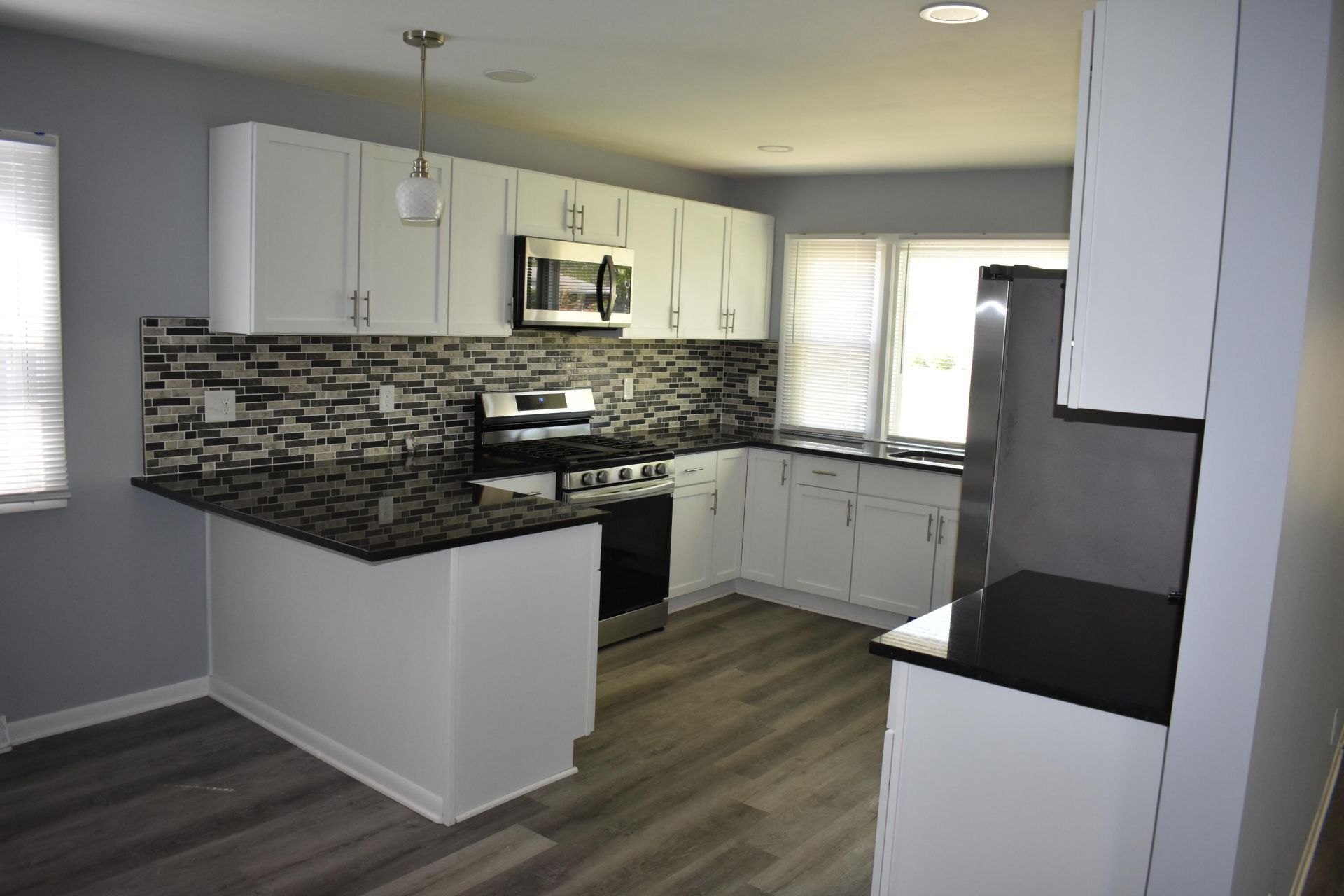 This move-in ready ranch offers a bright, welcoming layout with plenty of natural light, a spacious backyard, and a 2 car detached garage. The kitchen features a wall-to-wall casement window over the sink, filling the space with sunlight and creating an open, airy feel. It's equipped with stainless steel appliances, granite countertops, and a cozy eating area. The main living and dining area is warm and inviting, complete with a coat closet and a convenient three-quarter bath with a step-in shower. Toward the other end of the home, you'll find three comfortable bedrooms along with a full bath, offering both privacy and functionality. A laundry room just off the kitchen provides added convenience and direct access to the backyard and garage, making everyday living easy and efficient.