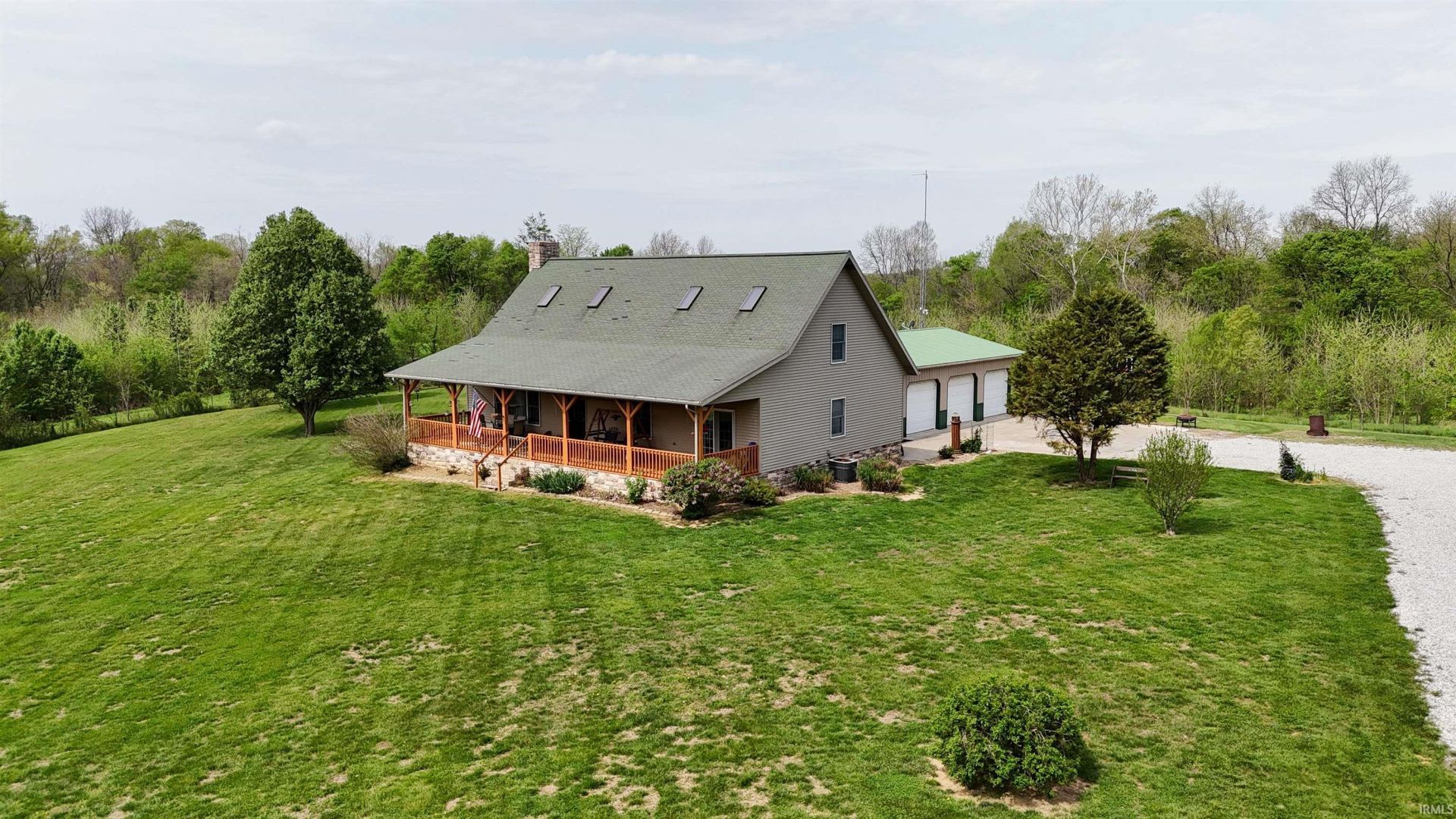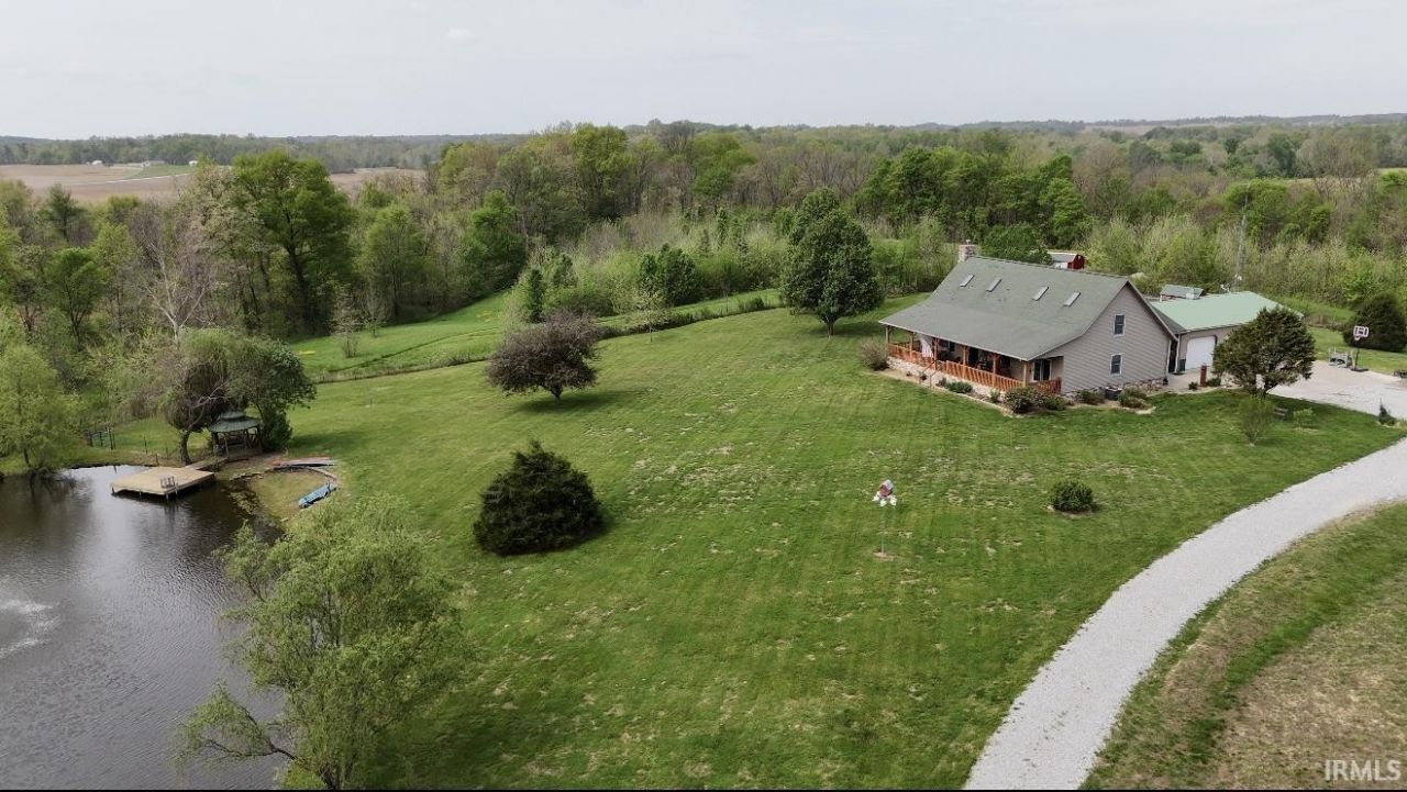 Escape to your own private retreat on nearly 40 acres of scenic countryside. This one-of-a-kind property is designed for those who appreciate nature, space, and versatility?featuring a custom-built home, a serene stocked pond with a sandy beach area, rolling pasture, mature fruit trees, and plenty of room for gardening or small livestock. Inside, the home welcomes you with an open and airy layout. The main level offers two generously sized bedrooms, two full bathrooms, and a dedicated laundry room with utility sink. The vaulted cathedral ceiling creates a dramatic focal point in the living, dining, and kitchen areas, complemented by a freestanding wood stove. The kitchen showcases custom hickory cabinetry, updated lighting, and modern appliances, while rich hickory hardwood flooring adds warmth and continuity throughout the main living space. The upper level features a spacious loft bedroom and a convenient half bath?ideal for guests or a private retreat. Downstairs, the mostly finished basement provides additional living space, including a theater room, two flexible bonus rooms, a large recreation area, and ample storage for hobbies or home canning. Step outside and explore your own backyard oasis with established trails for walking or riding, abundant wildlife and birdwatching opportunities, and endless potential for outdoor living.